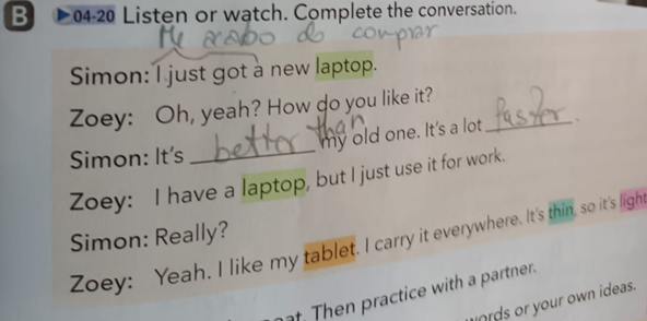 El alumno aquí ha hecho uso de la traducción (I just got a new laptop). La oración traducida es, tal vez, no tan literal, y requiere un cierto dominio del idioma, pero también de las connotaciones semánticas del verbo “get”, ya que este posee muchas acepciones según su contexto. Es muy probable que el alumno hay preguntado al facilitador de idiomas, y este haya ofrecido una explicación, que a su vez puede haber confundido al alumno o simplemente este haya creído que la única forma de memorizar el significado de la oración era haciendo uso de la traducción. Sea cual sea el caso, la traducción sigue siendo una herramienta viva y usada en las clases de idiomas, quizás de forma secreta y no tan abierta.