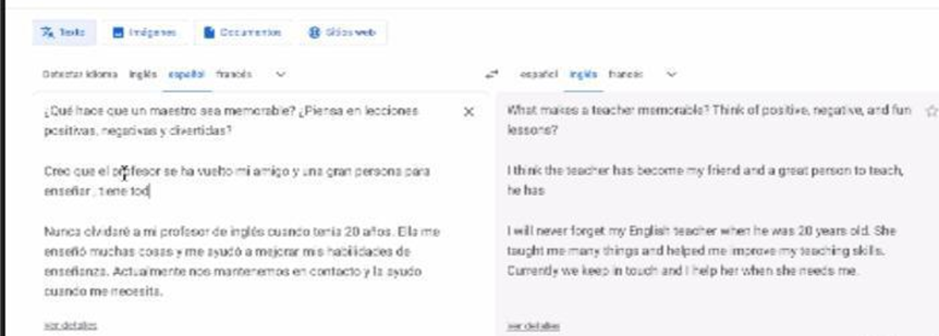 Sin embargo, cosa distinta es lo sucede en las clases. Y al parecer, aunque se sataniza el uso de la traducción como estrategia en el aprendizaje de idiomas, lo cierto es que muchos alumnos lo siguen usando de forma abierta en algunos casos; y en otros de forma más secreta, sin sospecha. Hace unos meses mientras enseñaba un curso de inglés avanzado me di con la sorpresa que algunos estudiantes seguían usando la traducción para el desarrollo A de sus tareas. (Ver figura):